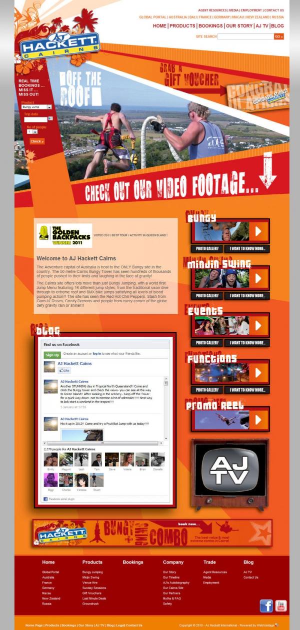 AJ Hackett has demonstrated thought leadership in commissioning WebVantage to produce a website and following industry best practice for the integration of their and online presence with the operational aspects of their business.