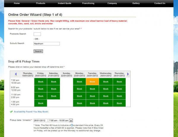 The most prominent feature of the Mobile Skips cloud is the ability for customers to buy right away, directly through the website. There is no need for them to talk with a customer service representative, they can check for availability, set the desired drop-off and delivery times and pay with a credit card – all in one web surfing session. Since the customer performs their own data entry, the chances of errors due to rekeying data is eliminated, not to mention the savings in staff time.