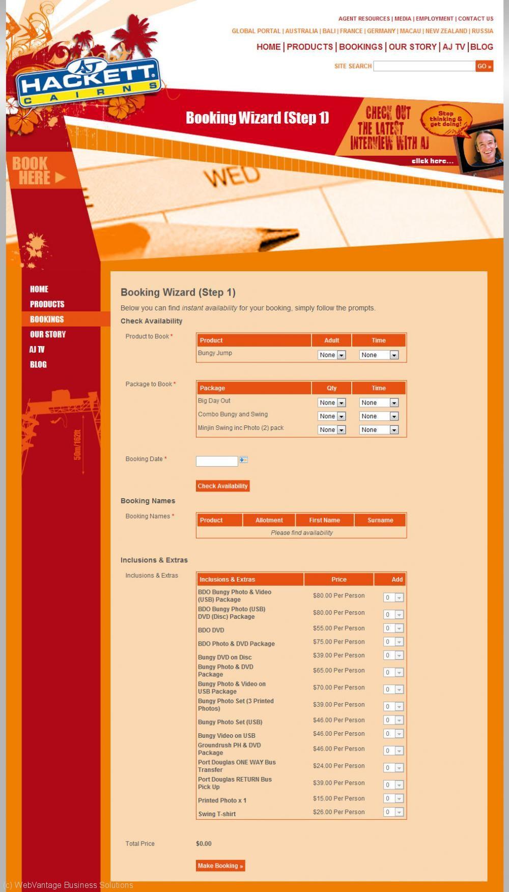 Website example - AJ Hackett